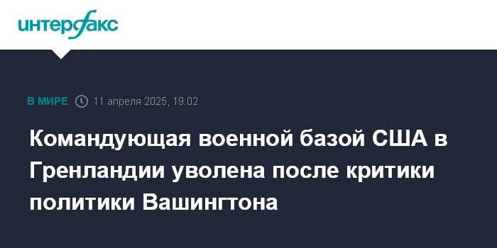 Командующая военной базой США в Гренландии уволена после критики политики Вашингтона