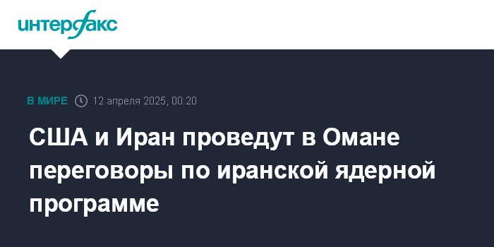 Москва. 12 апреля. INTERFAX.RU - Представители США и Ирана встретятся в Омане в субботу для обсуждения иранской ядерной программы.