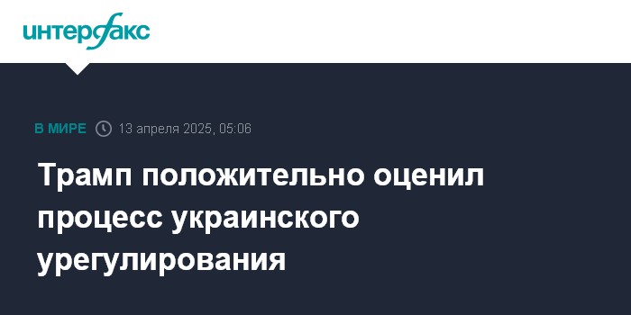 Москва. 13 апреля. INTERFAX.RU - Президент США Дональд Трамп заявил, что, по его мнению, урегулирование украинского кризиса происходит нормально.