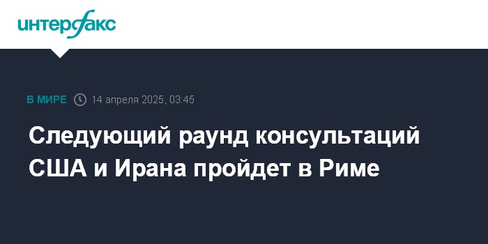 Москва. 14 апреля. INTERFAX.RU - Второй раунд переговоров между США и Ираном состоится в субботу, 19 апреля, в Риме, сообщает Axios со ссылкой на осведомленные источники.