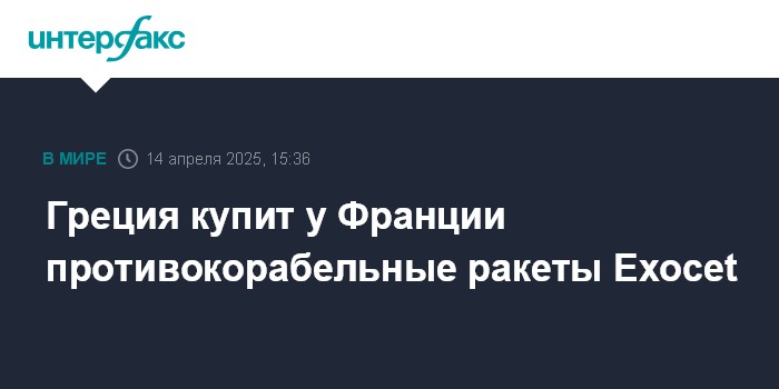 Москва. 14 апреля. INTERFAX.RU - Греция купит партию французских противокорабельных ракет Exocet, сообщает AP.