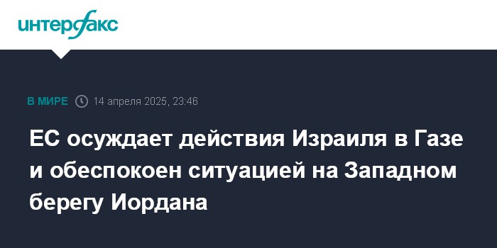 ЕС осуждает действия Израиля в Газе и обеспокоен ситуацией на Западном берегу Иордана