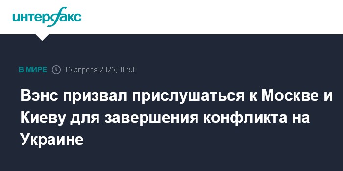 Москва. 15 апреля. INTERFAX.RU - Вице-президент США Джей Ди Вэнс считает, что понимание как российской, так и украинской точек зрения необходимо для решения украинского конфликта.