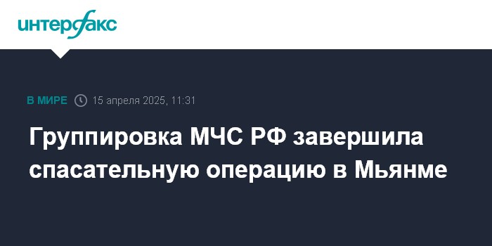Москва. 15 апреля. INTERFAX.RU - Последняя группа спасателей МЧС РФ, занимавшихся ликвидацией последствий землетрясения в Мьянме, направляется в Москву, сообщила пресс-служба министерства во вторник.