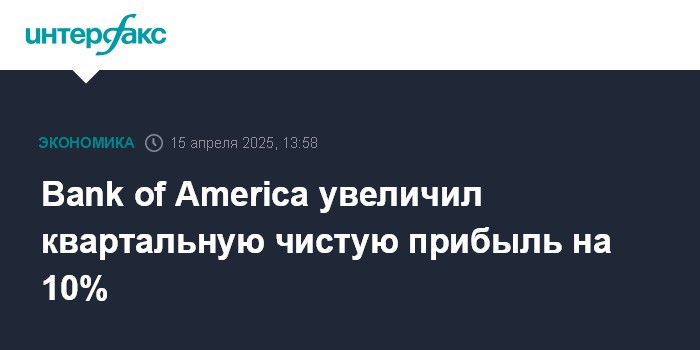 Москва. 15 апреля. INTERFAX.RU - Bank of America Corp., второй по размеру активов банк США, в первом квартале 2025 года увеличил чистую прибыль примерно на 10%, выручку - на 6%.