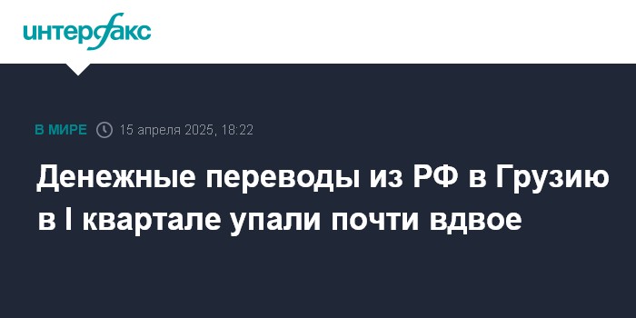 Москва. 15 апреля. INTERFAX.RU - Денежные переводы в Грузию из России в I квартале упали в 1,9 раза до $93,3 млн. Таковы статданные, опубликованные Нацбанком Грузии.