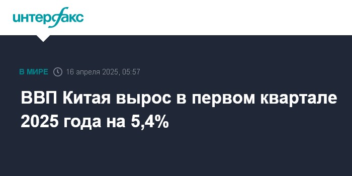 ВВП Китая вырос в первом квартале 2025 года на 5,4%