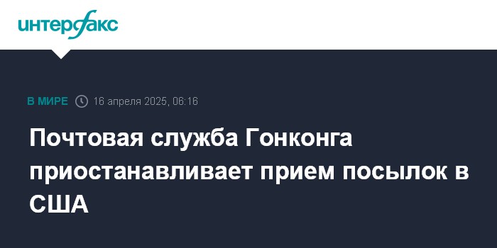 Ранее администрация президента США объявила, что со 2 мая отменит режим беспошлинной торговли (de minimis) для почтовых отправлений из Китая, включая Гонконг.
