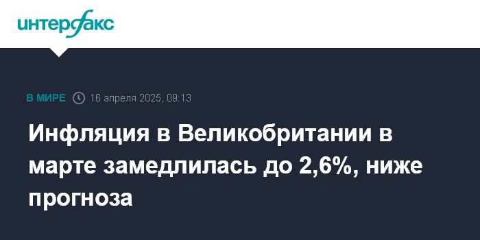 Инфляция в Великобритании в марте замедлилась до 2,6%, ниже прогноза