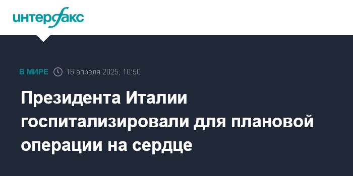 Москва. 16 апреля. INTERFAX.RU - Президента Италии Серджо Маттареллу госпитализировали для плановой установки кардиостимулятора, сообщают в среду итальянские СМИ.