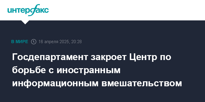 Москва. 16 апреля. INTERFAX.RU - Подразделение Госдепартамента США по борьбе с иностранным информационным вмешательством прекращает работу, сообщил госсекретарь Марко Рубио. Его заявление опубликовано на сайте ведомства.