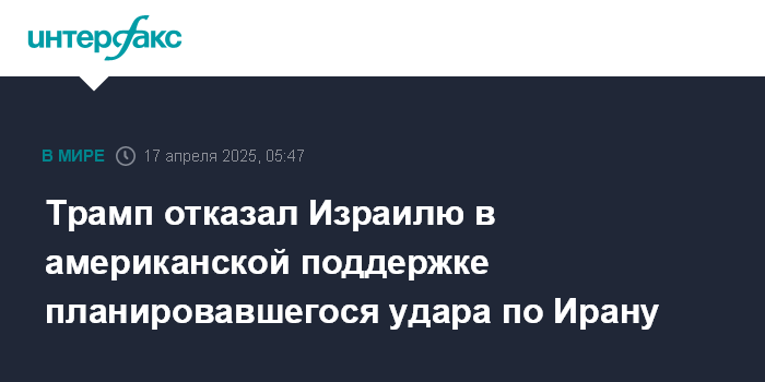 "Ранее в этом месяце Трамп проинформировал Израиль о том, что США не поддержат нападение. Он обсудил вопрос с премьер-министром Нетаньяху в ходе его посещения Вашингтона на прошлой неделе. На встрече в Овальном кабинете Трамп объявил, что Соединенные Штаты начинают переговоры с Ираном", - пишет издание.