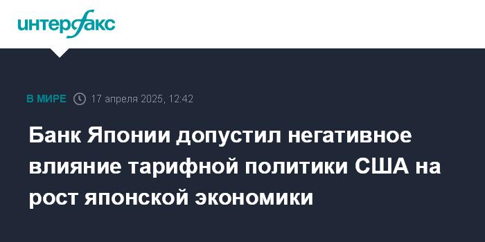 Банк Японии допустил негативное влияние тарифной политики США на рост японской экономики
