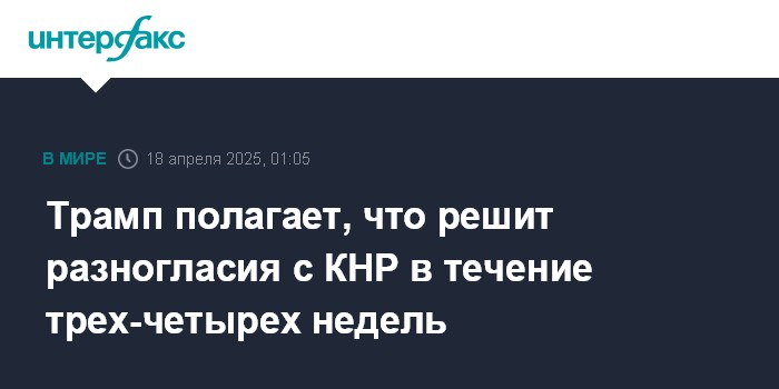 Трамп полагает, что решит разногласия с КНР в течение трех-четырех недель