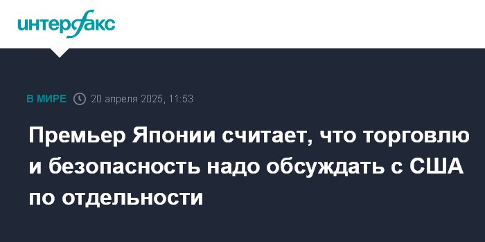 Москва. 20 апреля. INTERFAX.RU - Премьер Японии Сигэру Исиба в воскресенье заявил, что торговые переговоры с США не должны включать в себя обсуждение вопросов безопасности.