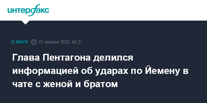 Как сообщалось, в конце марта главный редактор издания The Atlantic Джеффри Голдберг рассказал, что случайно оказался в закрытом чате в мессенджере, где Хегсет обсуждал планы по нанесению ударов по объектам хуситов в Йемене с вице-президентом страны Джей Ди Вэнсом, советником по нацбезопасности Майком Уолтцем и госсекретарем Марко Рубио.