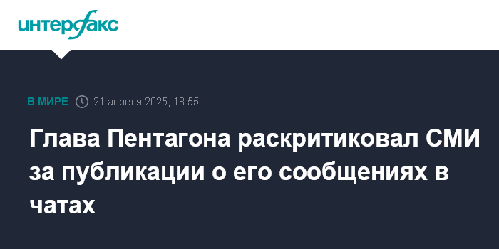 Москва. 21 апреля. INTERFAX.RU - Министр обороны США Пит Хегсет раскритиковал СМИ и бывших сотрудников военного ведомства за попытки очернить его репутацию, пишет The Hill.