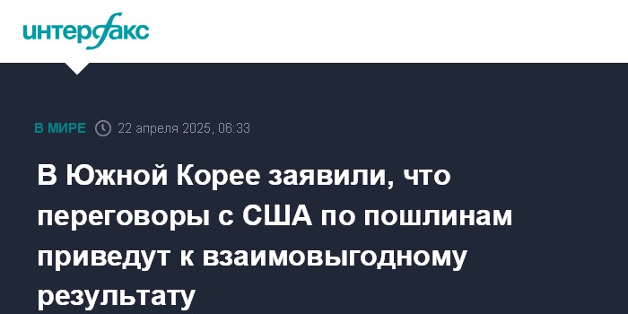 В Южной Корее заявили, что переговоры с США по пошлинам приведут к взаимовыгодному результату