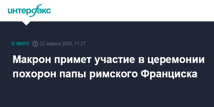 Москва. 22 апреля. INTERFAX.RU - Президент Франции Эммануэль Макрон сообщил телеканалу BFMTV, что он отправится на похороны папы римского Франциска.