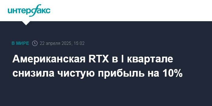 Москва. 22 апреля. INTERFAX.RU - Американская RTX Corp. (ранее Raytheon Technologies) в первом квартале 2025 года снизила чистую прибыль на 10%, при этом скорректированный показатель и выручка превзошли ожидания экспертов.