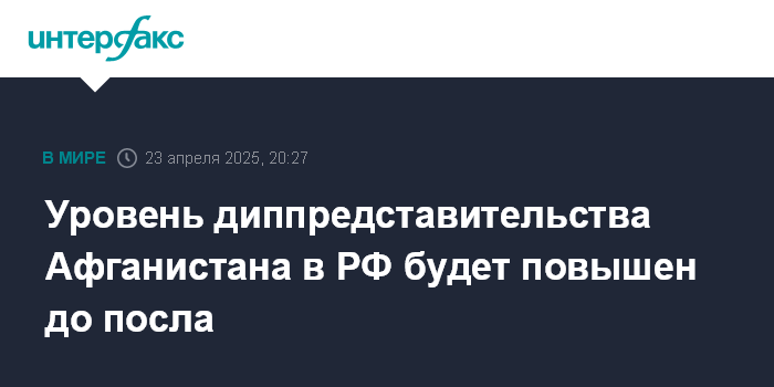 Уровень диппредставительства Афганистана в РФ будет повышен до посла