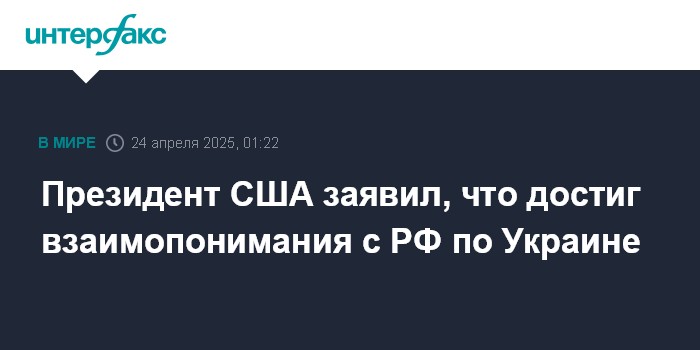 Москва. 24 апреля. INTERFAX.RU - Президент США Дональд Трамп заявил, что достиг понимания с Москвой по вопросу об украинском урегулировании и теперь нацелен на достижение такого же результата с Киевом.