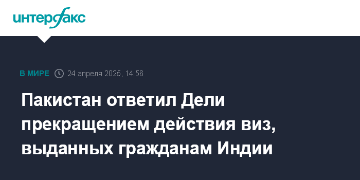 Эти меры стали ответом на решение Индии признать недействительными с 27 апреля все визы, выданные пакистанцам.