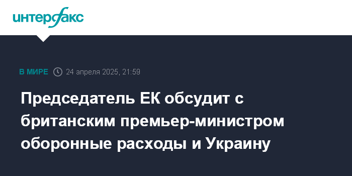 Москва. 24 апреля. INTERFAX.RU - Председатель Еврокомиссии Урсула фон дер Ляйен подчеркнула значимость обсуждения с премьер-министром Великобритании Киром Стармером ситуации вокруг Украины и оборонных проблем Европы.