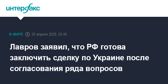 Лавров заявил, что РФ готова заключить сделку по Украине после согласования ряда вопросов