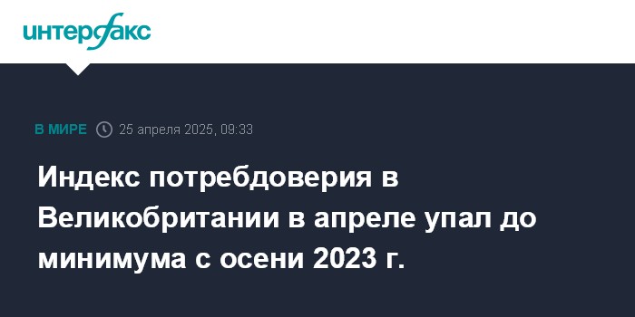 Индекс потребдоверия в Великобритании в апреле упал до минимума с осени 2023 г.