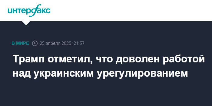 Москва. 25 апреля. INTERFAX.RU - Президент США Дональд Трамп заявил в пятницу, что видит успехи в работе над украинским урегулированием.