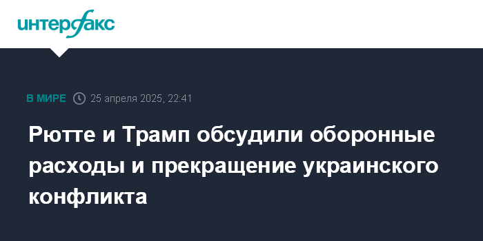 Москва. 25 апреля. INTERFAX.RU - На встречах генерального секретаря НАТО Марка Рютте, находившегося с визитом в США 24 и 25 апреля, обсуждались оборонные расходы и пути прекращения конфликта на Украине, сообщила в пятницу пресс-служба штаб-квартиры НАТО в сети X.