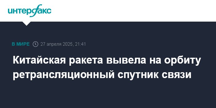 Москва. 27 апреля. INTERFAX.RU - Китайская ракета-носитель "Чанчжэн 3B" в воскресенье успешно вывела на орбиту спутник связи "Тяньлянь II-05" для обеспечения ретрансляции данных космических аппаратов, сообщило издание People's Daily
