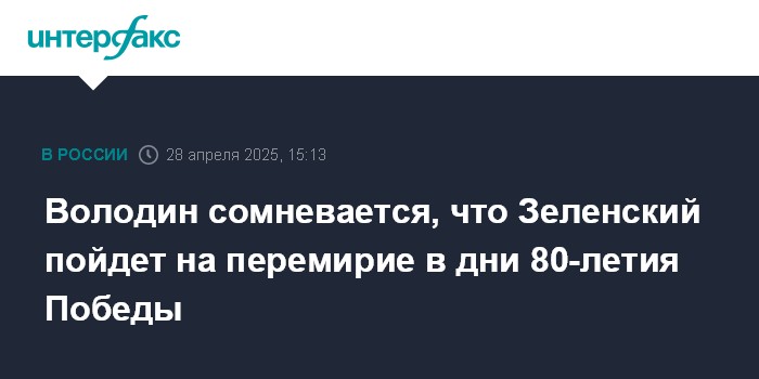Володин сомневается, что Зеленский пойдет на перемирие в дни 80-летия Победы