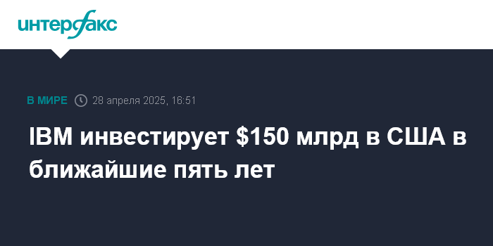 Москва. 28 апреля. INTERFAX.RU - Американская International Business Machines объявила о намерении инвестировать в США $150 млрд в ближайшие пять лет.