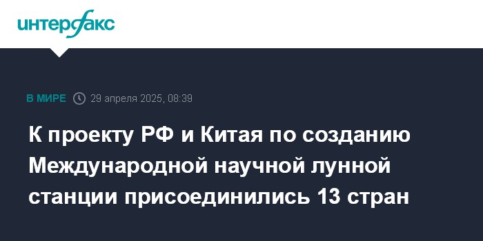 Москва. 29 апреля. INTERFAX.RU - К России и Китаю в работе по созданию Международной научной лунной станции присоединились 13 стран, а том числе из БРИКС, сообщил в понедельник гендиректор "Роскосмоса" Дмитрий Баканов.