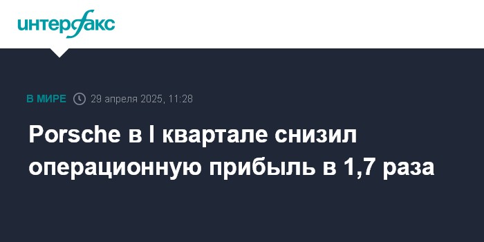 Москва. 29 апреля. INTERFAX.RU - Германский производитель автомобилей класса "люкс" Porsche AG в первом квартале сократил операционную прибыль в 1,68 раза и ухудшил прогноз на 2025 год.