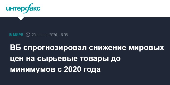 ВБ спрогнозировал снижение мировых цен на сырьевые товары до минимумов с 2020 года