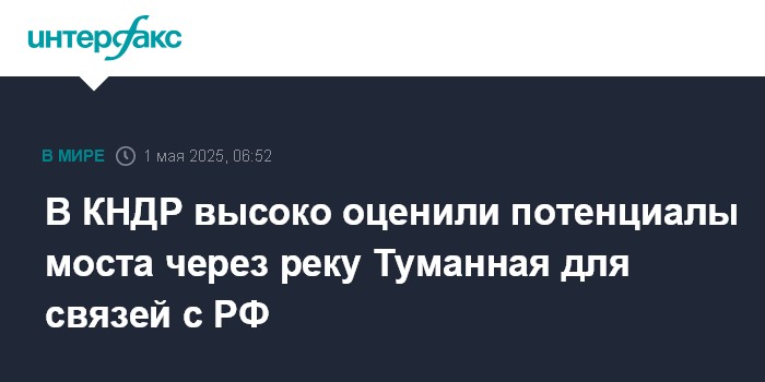 Москва. 1 мая. INTERFAX.RU - Начавшееся накануне строительство автомобильного моста через реку Туманная, соединяющего КНДР и Россию, представляет собой важный этап развития экономических и других связей двух стран, сообщило Центральное телеграфное агентство Кореи (ЦТАК).