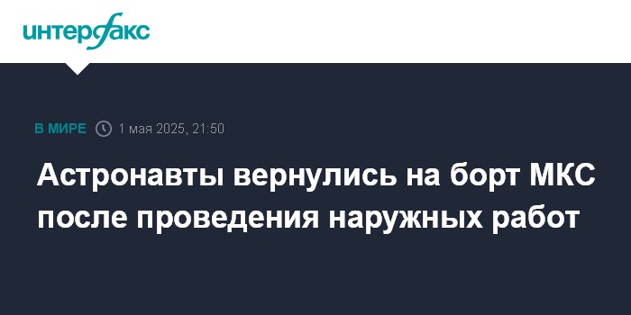 Москва. 1 мая. INTERFAX.RU - Американские астронавты Энн Макклейн и Николь Айерс в четверг после многочасового выхода в открытый космос вернулись на борт Международной космической станции (МКС), сообщило NASA.