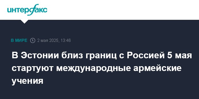 Москва. 2 мая. INTERFAX.RU - Генеральный штаб сил обороны Эстонии объявил в пятницу о проведении в республике - в основном на северо-востоке и юго-востоке, близ границ с Россией - крупнейших международных учений года.