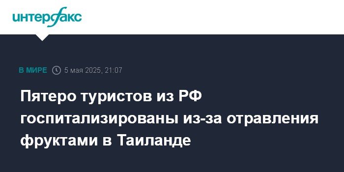Москва. 5 мая. INTERFAX.RU - Пятеро российских туристов госпитализированы в провинции Сурат-Тхани на юге Таиланда после того, как поели диких фруктов в местном парке, сообщает издание Bangkok Post.
