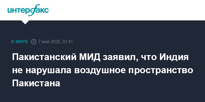 Москва. 7 мая. INTERFAX.RU - Индийские ВВС по время своей операции не вторгались в пакистанское воздушное пространство, сообщили в МИД Пакистана.