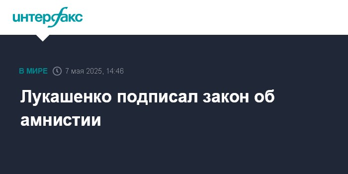 Москва. 7 мая. INTERFAX.RU - Президент Белоруссии Александр Лукашенко подписал закон "Об амнистии в связи с 80-летием Победы в Великой Отечественной войне", сообщила президентская пресс-служба.