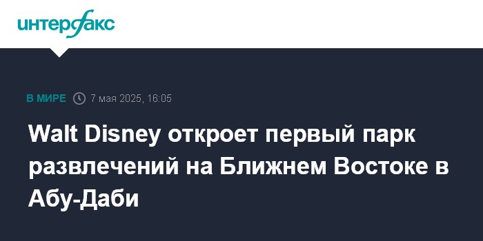 Москва. 7 мая. INTERFAX.RU - Walt Disney Co. объявила о строительстве парка развлечений в ОАЭ. Это будет 13-й тематический парк Disney и первый на Ближнем Востоке, говорится в пресс-релизе компании.