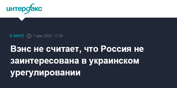 Вэнс не считает, что Россия не заинтересована в украинском урегулировании