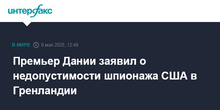 Москва. 9 мая. INTERFAX.RU - Премьер Дании Метте Фредериксен после появления в американских СМИ сообщений о наращивании разведывательной активности США в отношении Гренландии заявила, что союзные государства не должны вести шпионаж друг против друга.