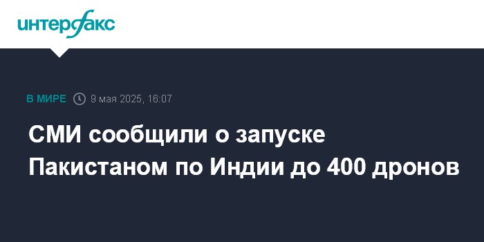 Москва. 9 мая. INTERFAX.RU - Военные Пакистана в ночь на пятницу выпустили по северным и западным районам Индии 300-400 беспилотников в ходе скоординированной атаки по 36 объектам, сообщает Hindustan Times.