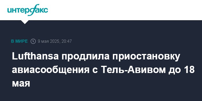 Ранее Lufthansa заявляла о приостановке авиасообщения с Тель-Авивом до 11 мая, отмечает телеканал BFM TV.
