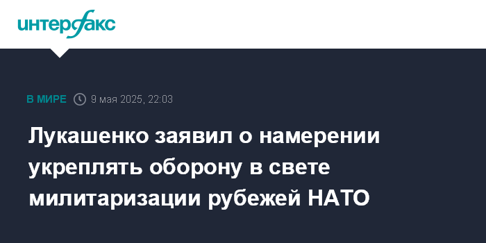 Москва. 9 мая. INTERFAX.RU - Президент Белоруссии Александр Лукашенко на параде в Минске по случаю 80-й годовщины Победы в Великой Отечественной войне пообещал укреплять обороноспособность страны на фоне милитаризации Польши и Прибалтики.